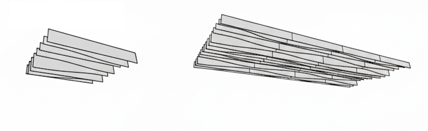 A: In high-ceiling environments, often yes. Vertical baffles interrupt sound waves that travel horizontally across the room (the noise that travels from one end of an office to the other). By exposing both the front and back faces, as well as the bottom edge, our baffles capture sound energy from all directions—direct noise from below and reflected noise from the ceiling void.